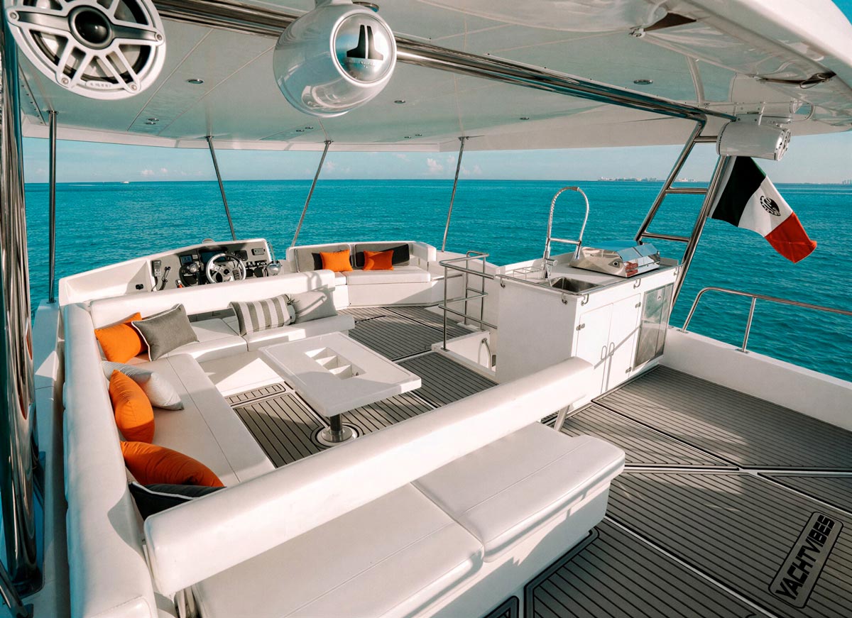 Spacious catamaran for bigger groups. Perfect for parties, family trips, or special events.